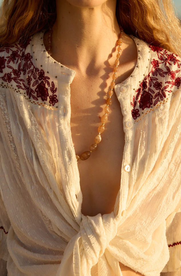 Using natural fibres, artisanal finishes, and slow, considered processes, we create clothing with purpose. From soft, breathable cottons and sheer, floaty viscose to hand embroidery, delicate smocking, and romantic hand-beaded tassels, every fabric and finish is chosen for how it feels, lasts, and lives with the body. Each piece is made to move with her - to be worn often, loved deeply, and treasured over time.