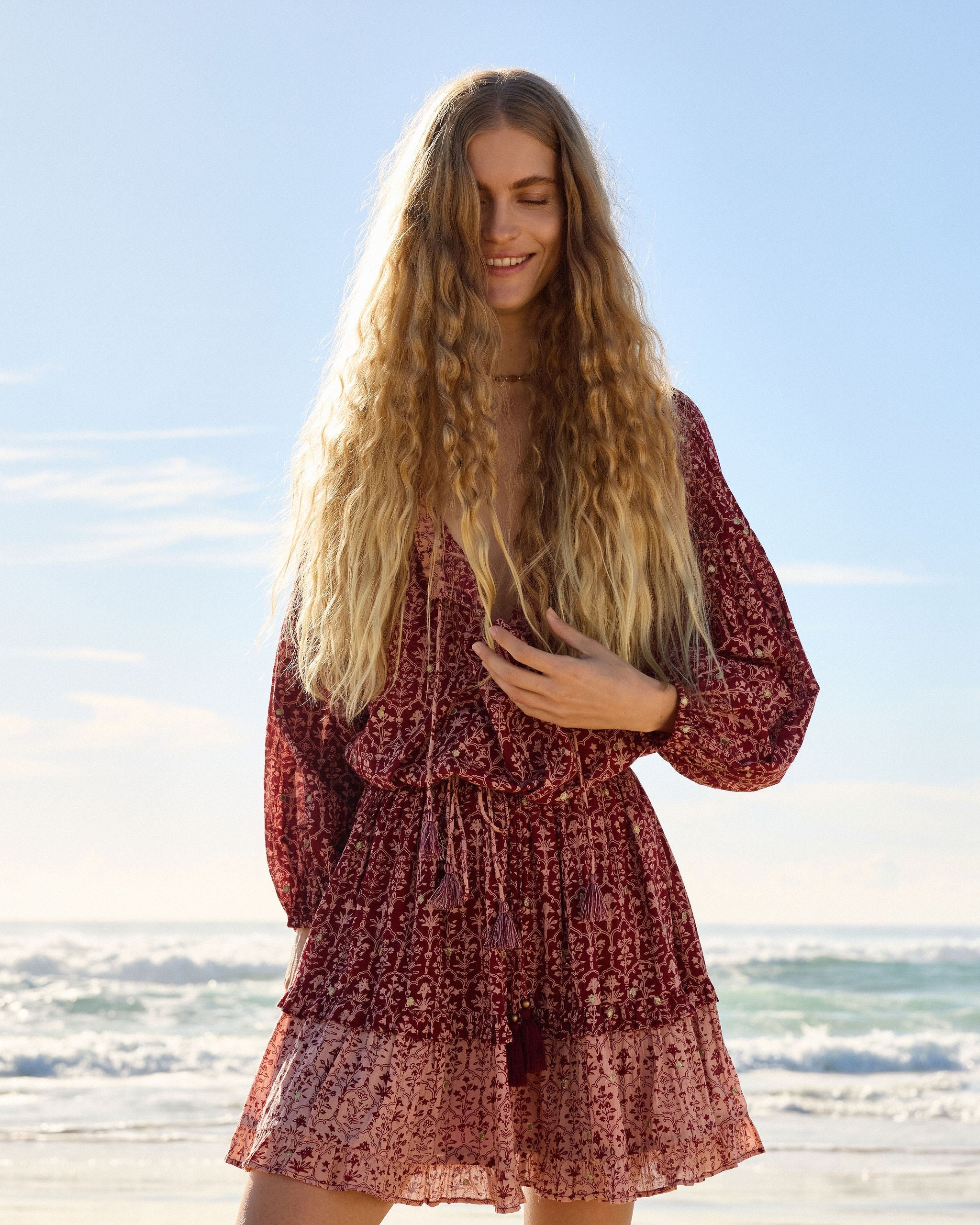 Using natural fibres, artisanal finishes, and slow, considered processes, we create clothing with purpose. From soft, breathable cottons and sheer, floaty viscose to hand embroidery, delicate smocking, and romantic hand-beaded tassels, every fabric and finish is chosen for how it feels, lasts, and lives with the body. Each piece is made to move with her - to be worn often, loved deeply, and treasured over time.